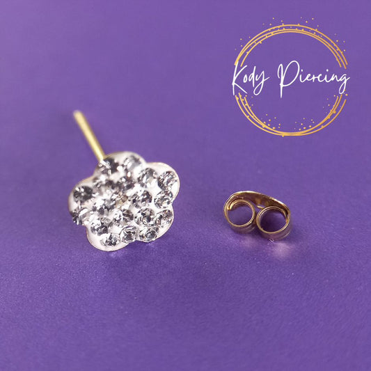 KODY PIERCING Boucles d’Oreille Fleur – Or 9 Carats & Zircon | Élégance Discrète