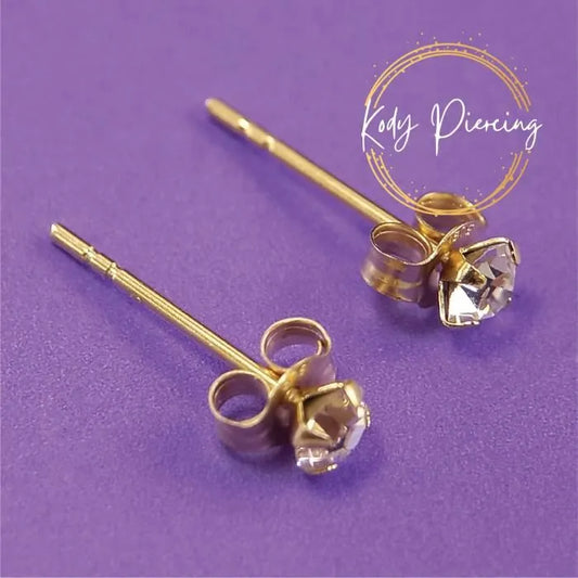KODY PIERCING Boucles d'oreille Or 9 Carats de 3mm serti - Choisissez la couleur préférée!