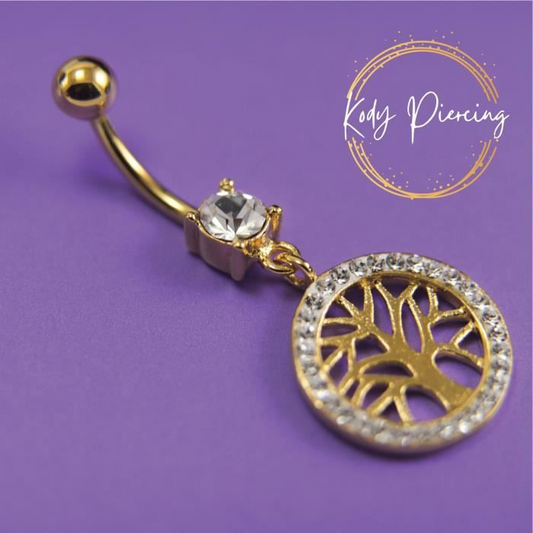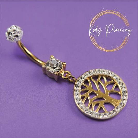 KODY PIERCING Nombril Arbre de Vie Cerclé de Cristaux avec boule en cristal - Plaqué Or 18 carats