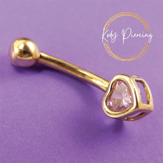 KODY PIERCING Nombril en Or Massif 14 carats Avec Un Cœur en Zircon Cubique Rose CZ