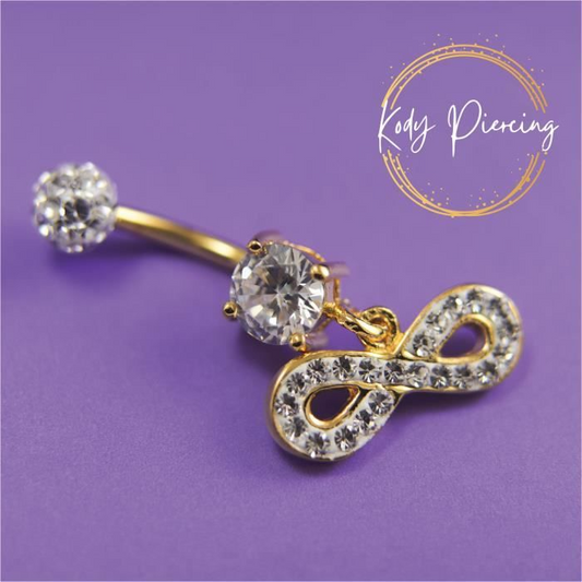 KODY PIERCING Nombril Motif Infinity Plaquée Or 18 Carats avec Boule Cristal