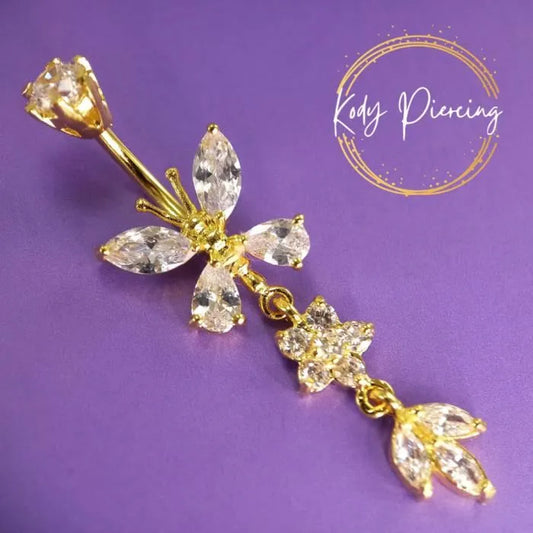 KODY PIERCING Nombril Papillon avec Pendant Plaqué Or 14 carats fermeture Cristal 10mm