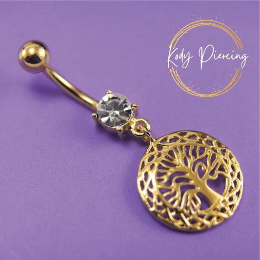 KODY PIERCING Nombril Arbre de Vie Plaqué Or Jaune 14 carats avec Diamant Clair