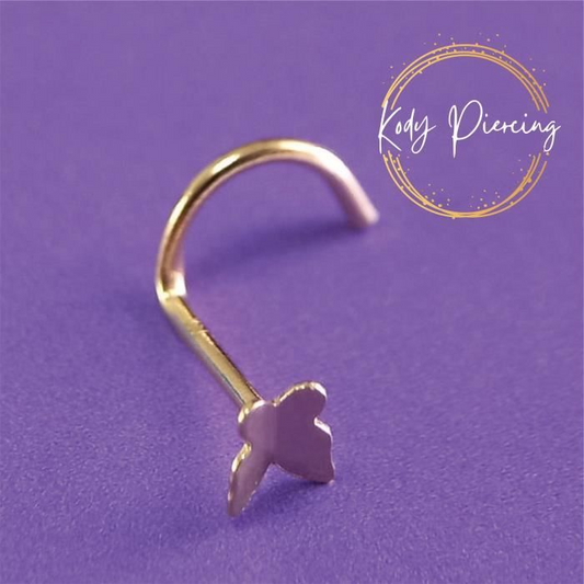 KODY PIERCING Tige Courbée OR Massif 14 Carats Motif Papillon