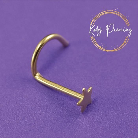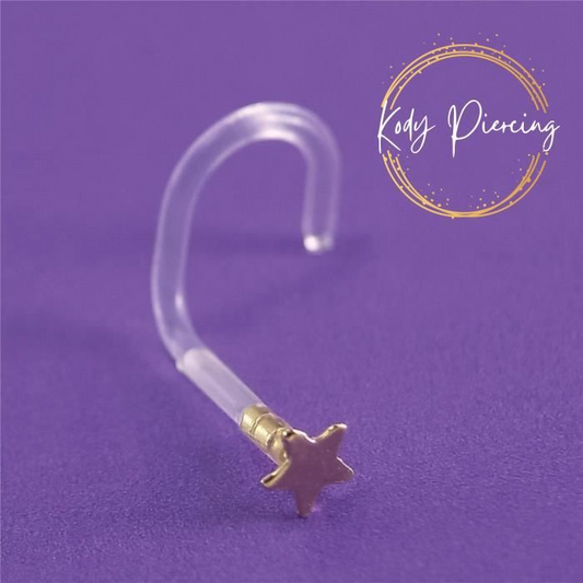 KODY PIERCING Tige Courbée Bioflex et tête en OR 14 carats Motif Etoile 3mm