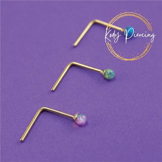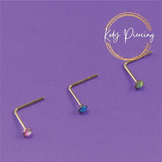 KODY PIERCING Coffret de 3 Pièces Tige L Or jaune 9 Carats et Opale Vert, Rose, Violet de 1,5 mm