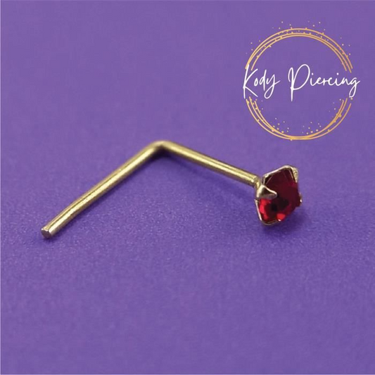 KODY PIERCING Tige en L OR 9 carats Orné d'un Authentique Cristal de 2mm serti Rouge ou Irisé - Choisissez votre couleur préférée!