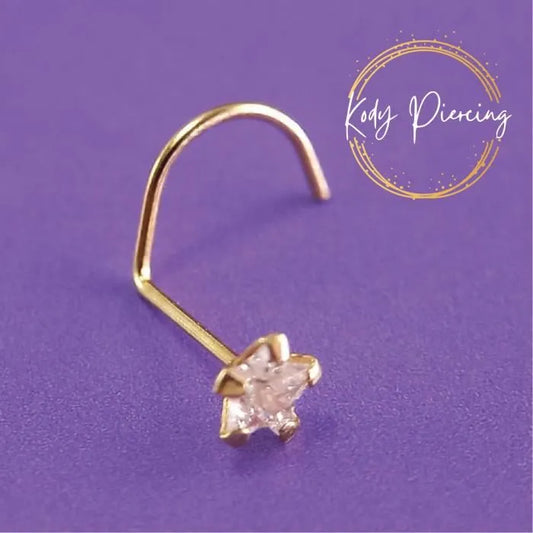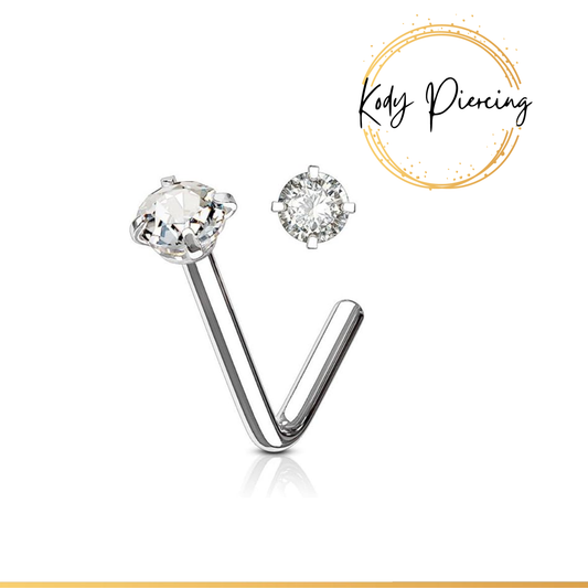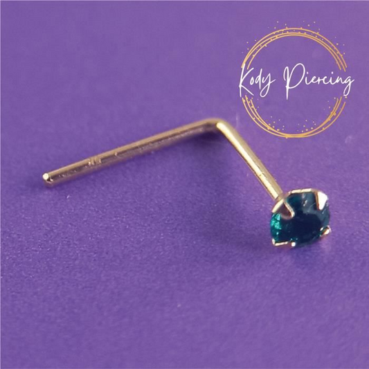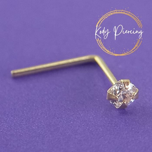 KODY PIERCING Tige en L – Or 10 Carats & Zircon Cubique 2mm | Nez Élégant