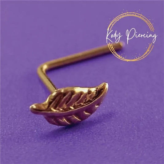 KODY PIERCING Tige en L en Or 9 Carats et Motif Feuille de 5mm