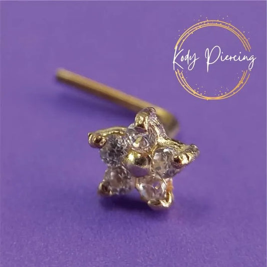 KODY PIERCING Nez Tige en L – Or 9 Carats & Étoile 3mm avec Zircon CZ